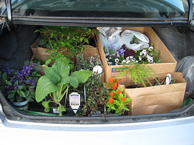 Miss A and I went on one heck of a nursery run today. I called ahead and obtained hours of a handful of nurseries in the area. Some were recommended by coworkers and friends while others were discovered at the Home & Garden show I attended earlier in the year. Then it was on to Google Maps and to plot our course. We did the whole run in twelve hours with stops for lunch and dinner. My little car was packed with plant life.